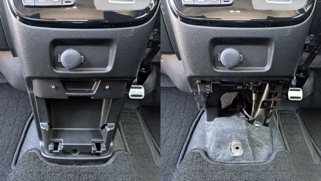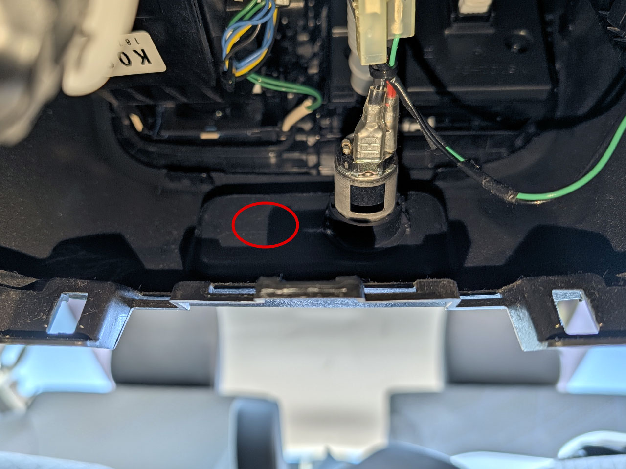 で、外したナビ用USBポートをどこへ移設するか考えていましたが、ここに移設することに決めました☝