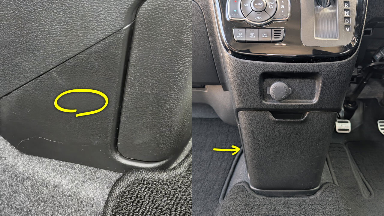 インバーターはコンソール内に収容してマジックテープで床に貼り付け、コンセントはコンソールの助手席側に設けようと思います。