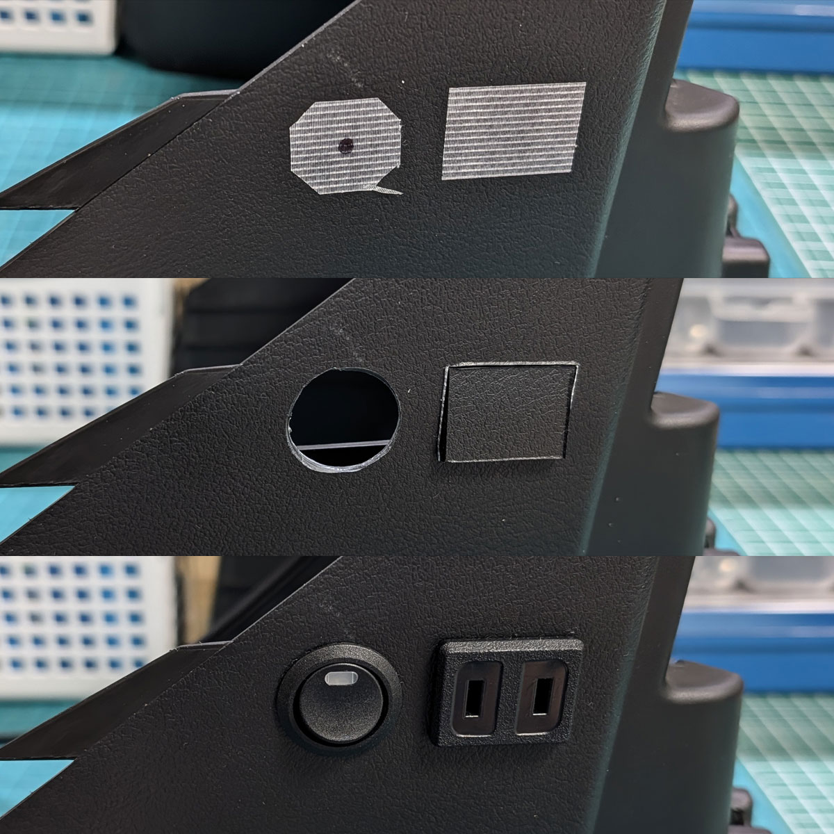 スイッチ用の20mmφはタケノコドリルで、コンセントは超音波カッターで開けました✨
